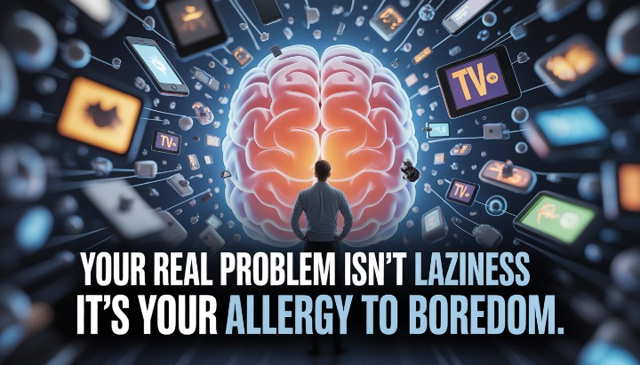 The struggle you experience is not a lack of discipline or intelligence; it is a consequence of living in a world that constantly overstimulates your mind. When your brain becomes accustomed to endless novelty, even normal, necessary work begins to feel unbearable. What you interpret as laziness is often just your nervous system rejecting boredom.